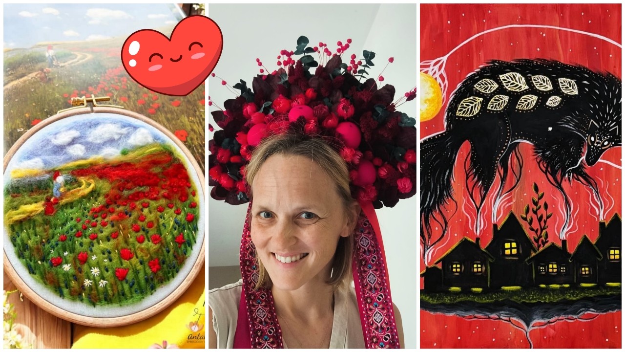 „Fotózásra kérték tőlem ezt a vinokot (hagyományos ukrán ünnepi fejdísz vagy koszorú virágokkal – a szerk.)! Előtte nem is hallottam még róla, úgyhogy igazi kihívás volt! Életem első ilyen alkotása! Csupa szárazvirágból és tartósított eukaliptuszból készült.”
