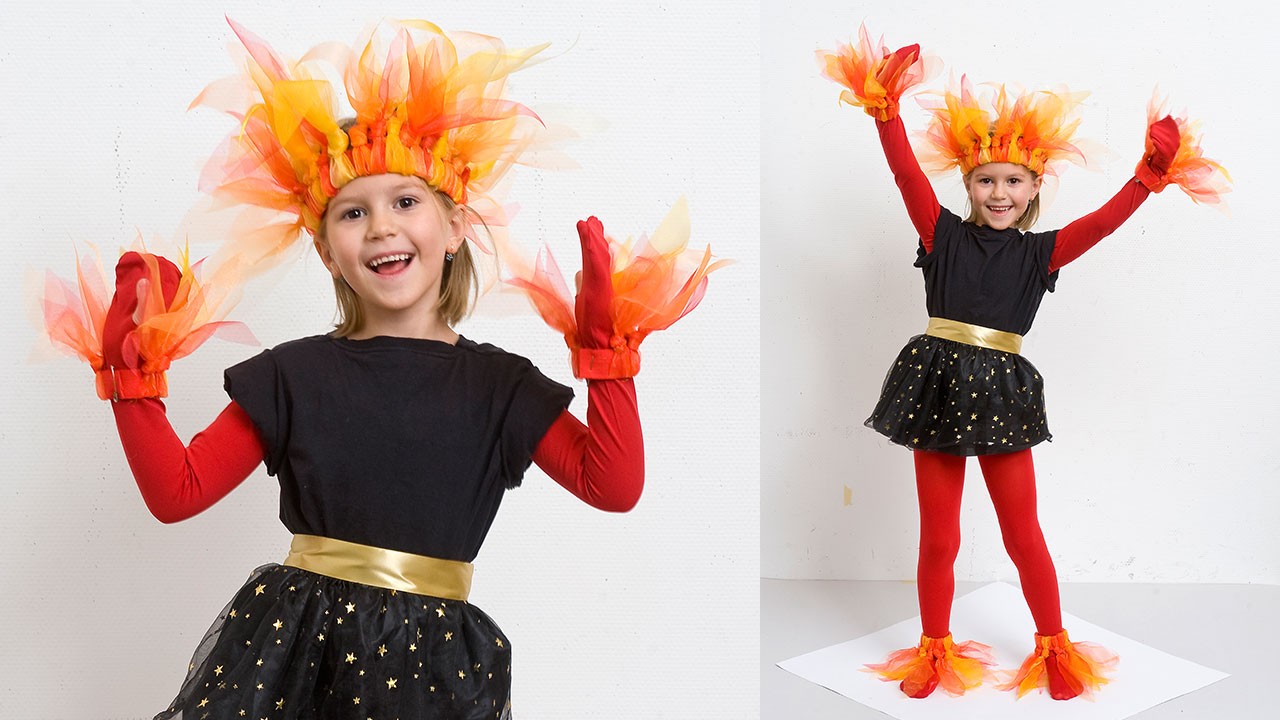 A Parázs jelmezhez készíts egy fejpántot és két boka-, illetve két csuklópántot, organza lángnyelvekkel. Ezekhez mérd le a gyerek fejkörét, csuklóját és bokáját. Mutatjuk a részleteket, haladj alkotónk útmutatásának megfelelően!