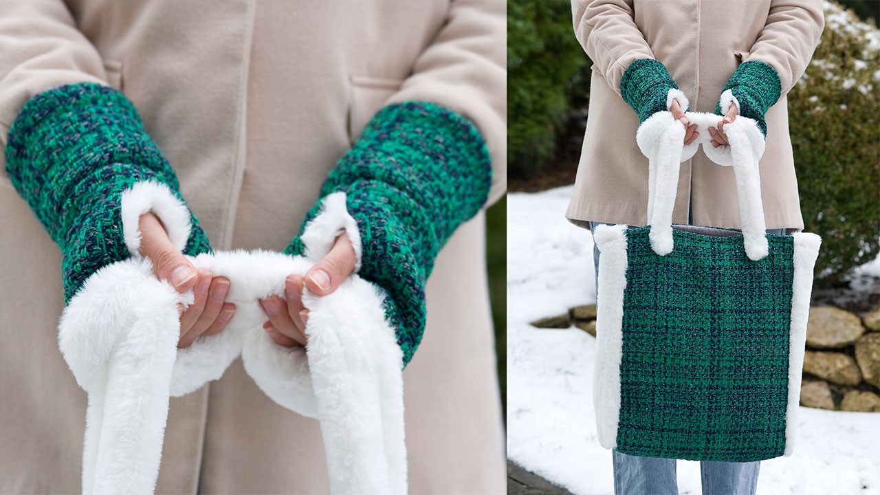 A hófehér szőrmével díszített kockás szövetből csodás szettet készíthetsz. Látványnak is megkapó, de a kézmelegítőbe bújni maga lesz a simogató mámor.