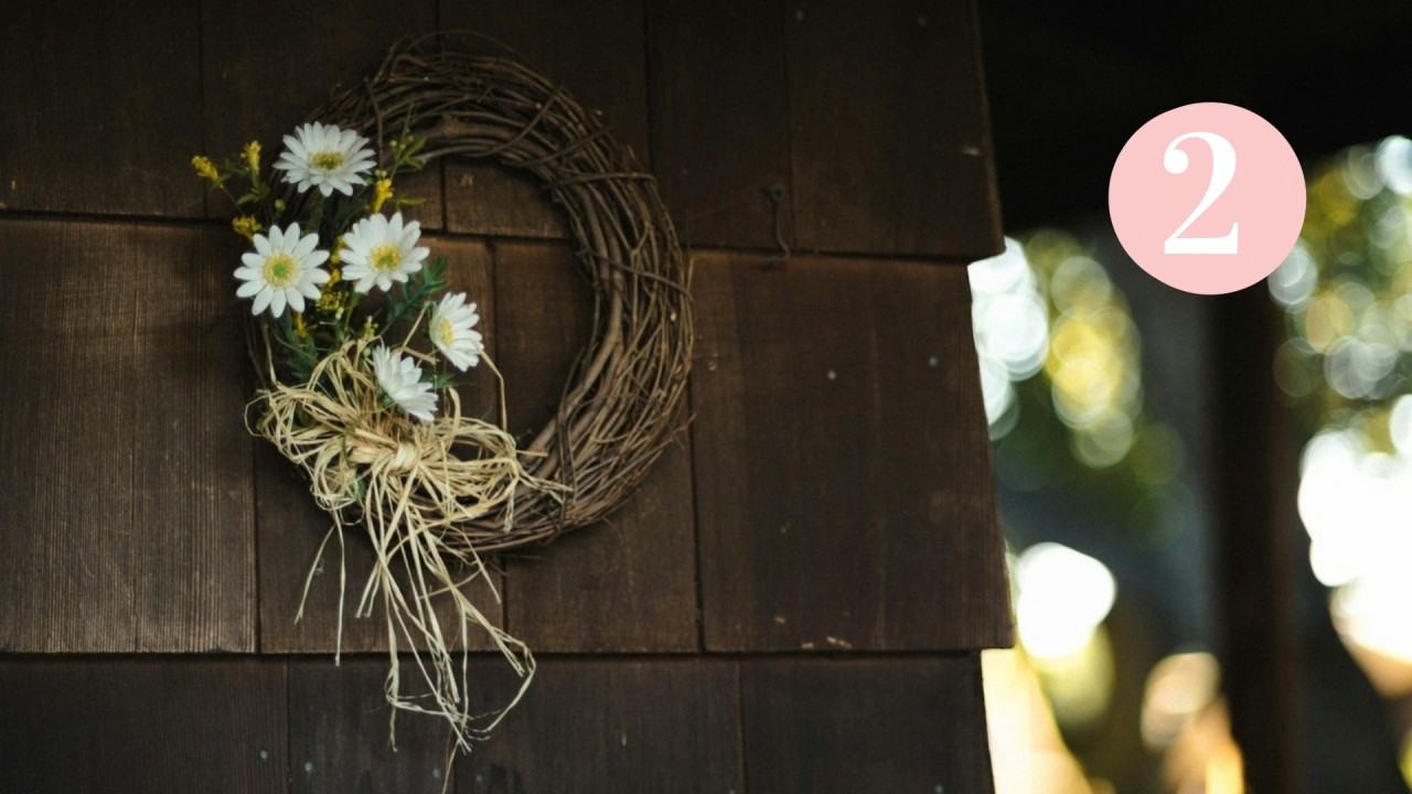 „Ez a csodaszép virágokkal, fehérített termésekkel, a közepén pedig egy saját készítésű madárkával díszített tavaszi ajtódísz most a legkedvesebb számomra.”