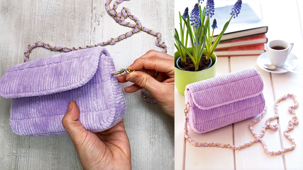 Lila-arany táska puha plüssfonalból: készítsd el velünk ezt a trendi kis darabot!
