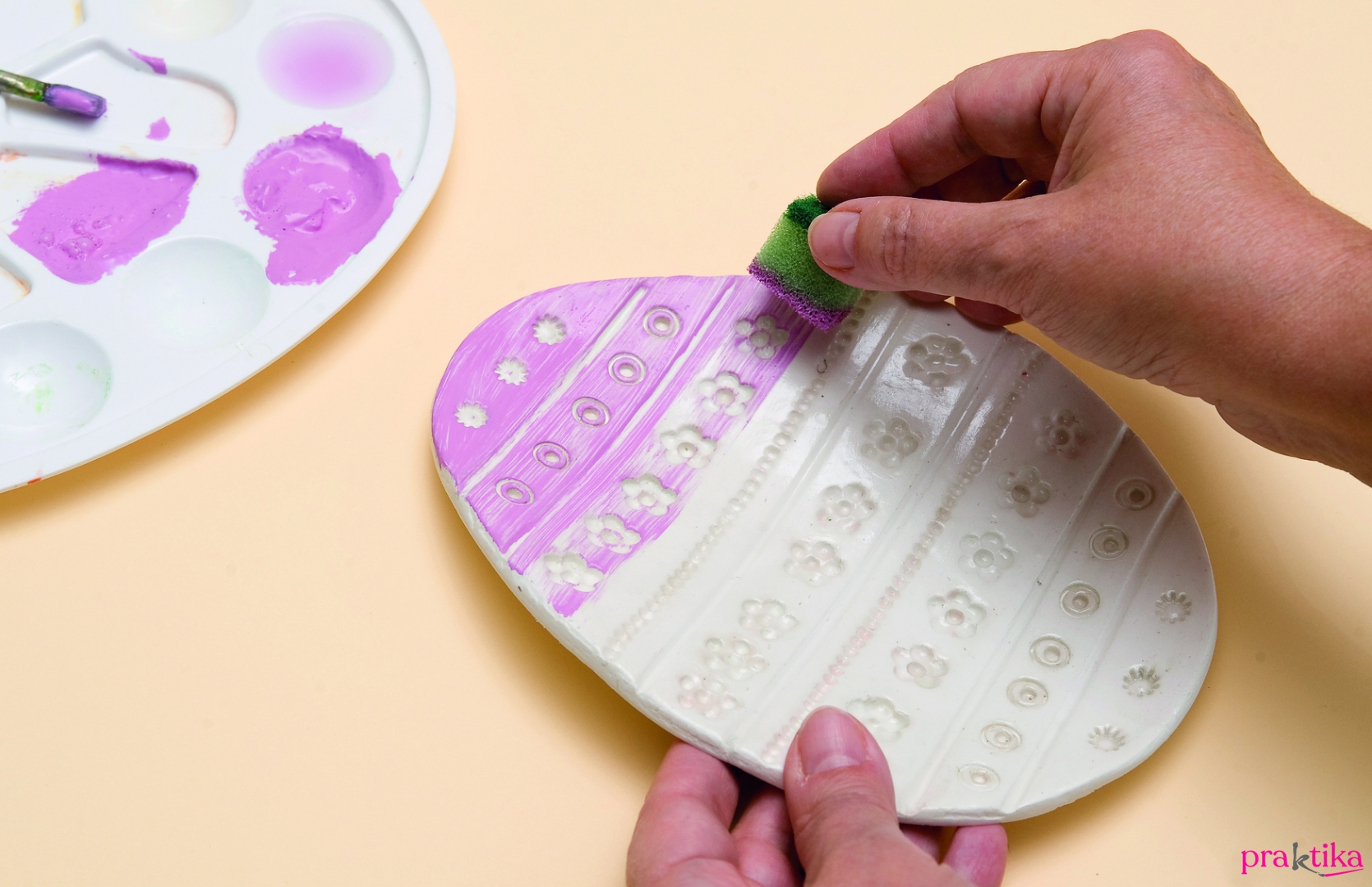 Tojás alakú kínálótálca levegőre száradó gyurmából húsvétra