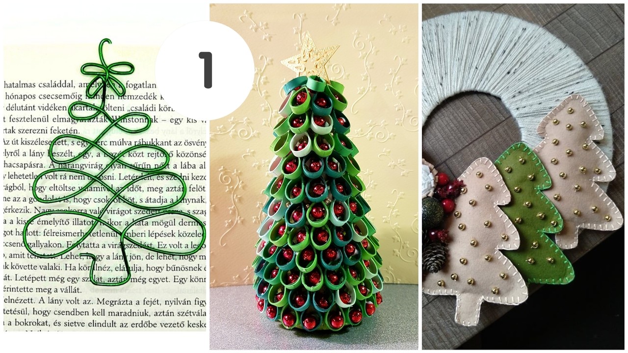 „Zöld színű drótból készítettem karácsonyfa formájú könyvjelzőket. Szerettem volna valami karácsonnyal kapcsolatos, praktikus kis ajándékot készíteni. Így születtek meg ezek a könyvjelzők.”