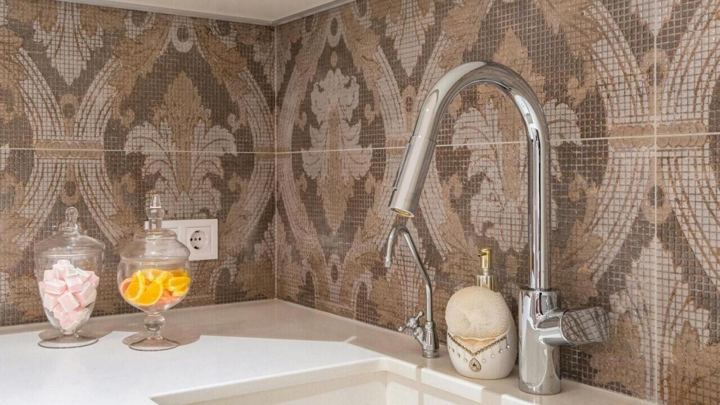A mozaikok ezeken a helyeken hagyományosan népszerűek, és nem véletlenül. Jól bírják a nedvességet, könnyen tisztíthatók, és képesek érzékenyen játszani a fényekkel. Egy apró, csillogó felület még a kisebb tereket is tágasabbnak mutatja.