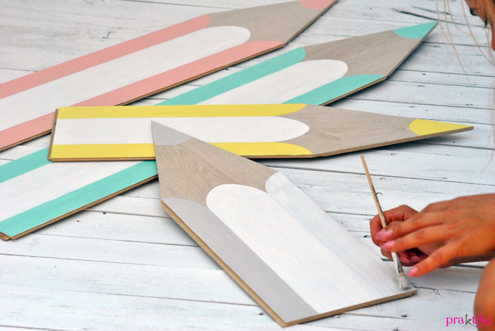 Óriási DIY ceruzák a gyerekszoba falára: készítsd el velünk parkettalapokból!
