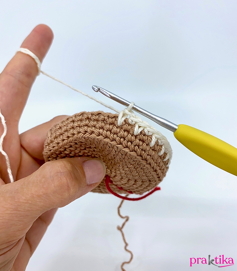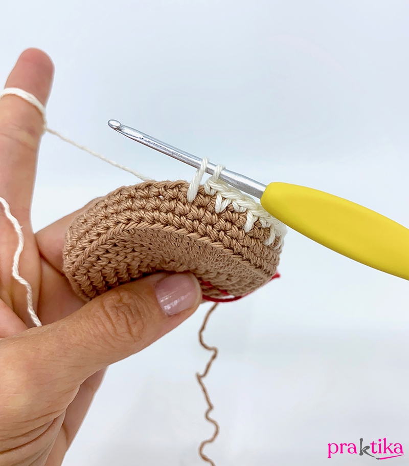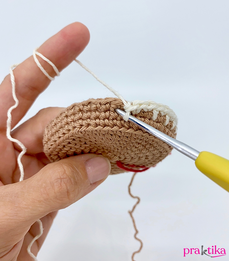 Ne vágd el a fonalat, folytasd a fej horgolásával.