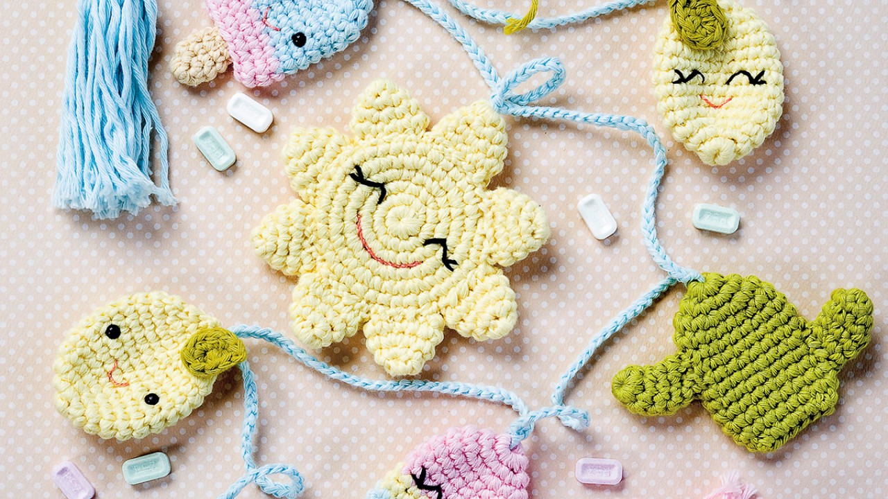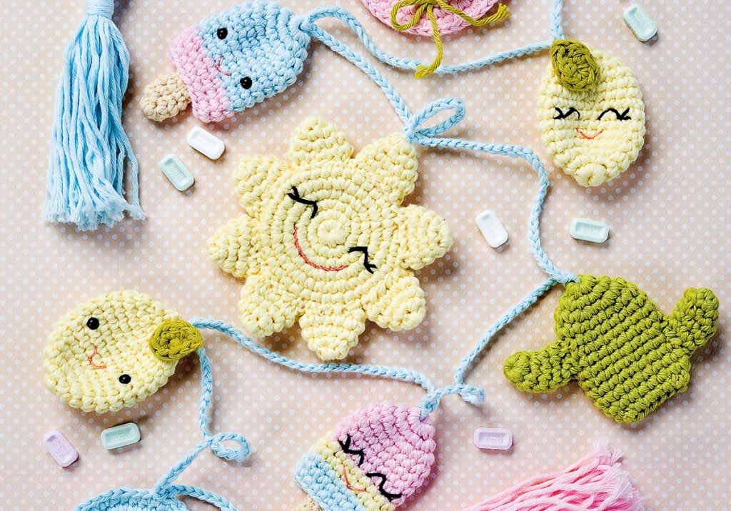 4. kör: 1 rp minden rp-ba. <12 rp> Hagyj hosszú szálat, vágd el a fonalat, és rögzítsd az ut hurkot. Rögzítsd őket gombostűkkel a napocska szélére, majd varrd fel a helyükre.