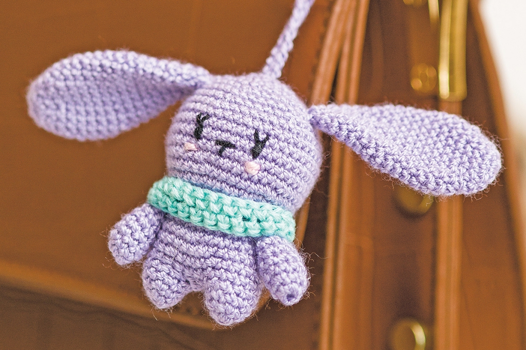 Mindkét figurának ugyanúgy készül a teste: először horgold meg az egyik lábat, majd a másikat, ezt a kettőt dolgozd össze, utána horgold tovább a testet és a fejet, közben folyamatosan tömd ki, majd hímezd ki az arcot is. A feje tetején zárd a munkát. Végül horgold meg a karokat, a füleket és jöhet a kulcskarika-szerelés.