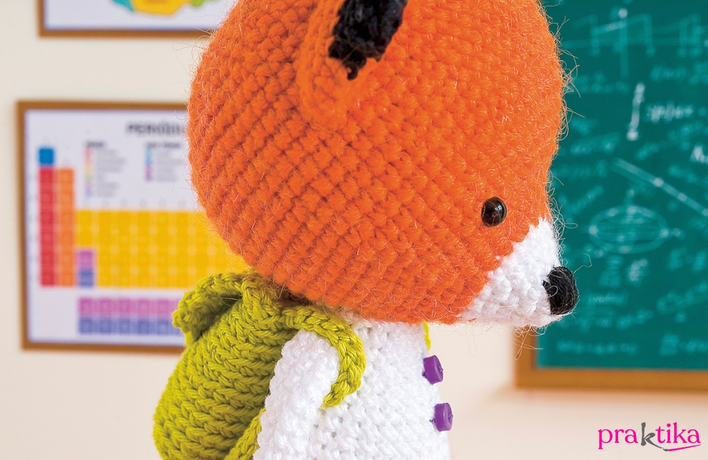 Hozzávalók • Schachenmayr Catania fonal: A szín: fehér (00106) 10 gr, B szín: jaffa (00189) 40 gr, C szín: jácint (00240) 4 gr, D szín: vörösbor (00192) 2 gr, E szín: fekete (00110) 1 gr, F szín: ánizs (00245) 5 gr • Alize Kid Royal FONALLAK: a szín: fehér (55) 4 gr, b szín: narancs (487) 10 gr • 2,5 mm horgolótű • 6 mm-es biztonsági szem - 1 pár • puha játéktömő vatta • fonalvarrótű • szemjelölő • gombostűk • fekete hímzőcérna • 3 db apró gomb