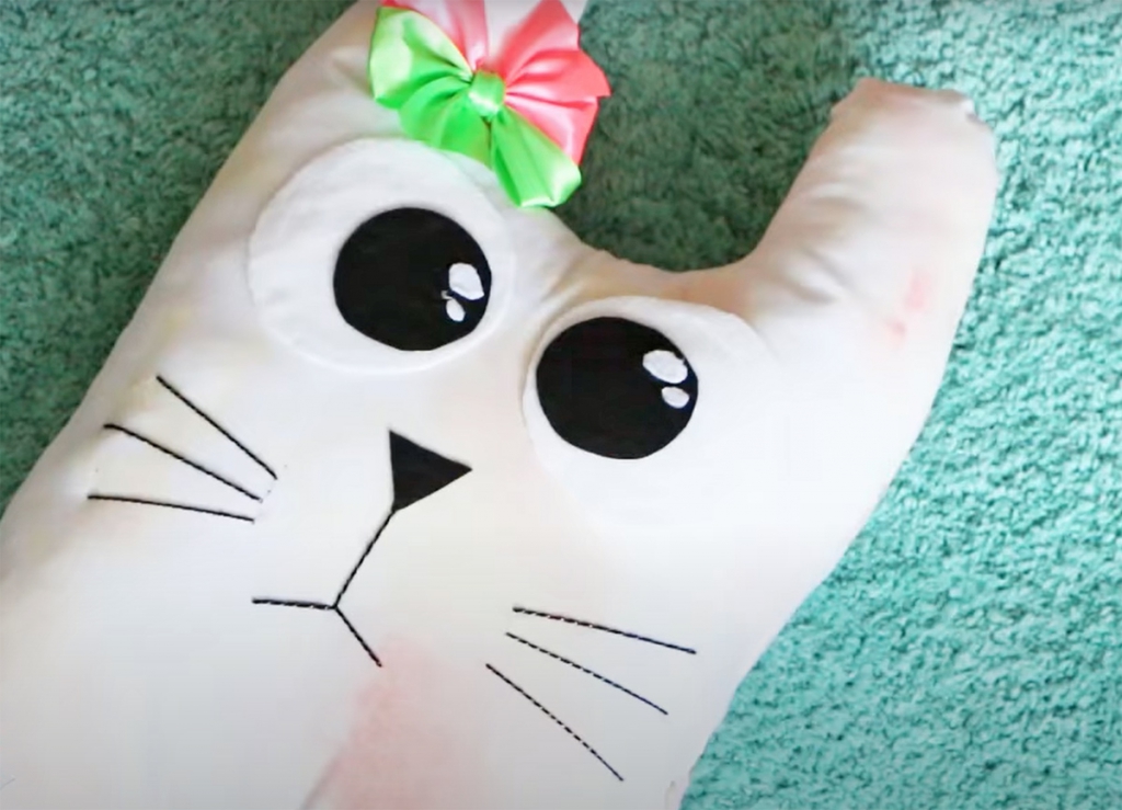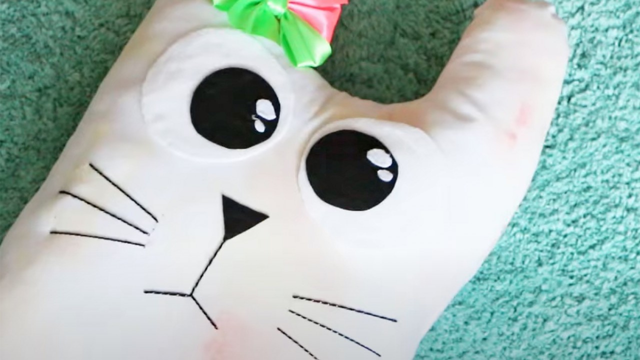 A cicák testét egy régi párnahuzatból könnyen megrajzolhatod a videó alapján, túl nagy kézügyesség sem kell hozzá. Ha ez megvan, vágd ki a vonalak mentén és varrógéppel varrd össze úgy, hogy egy kis rés maradjon, amin ki tudod fordítani. A kifordítás után jöhet a cica arca: a szemeket, az orrot filcből tudod felvarrni, a száját és bajszocskáját pedig hímezd ki. Végül tömd ki tömőanyaggal és a rést ragaszd össze melegragasztóval.