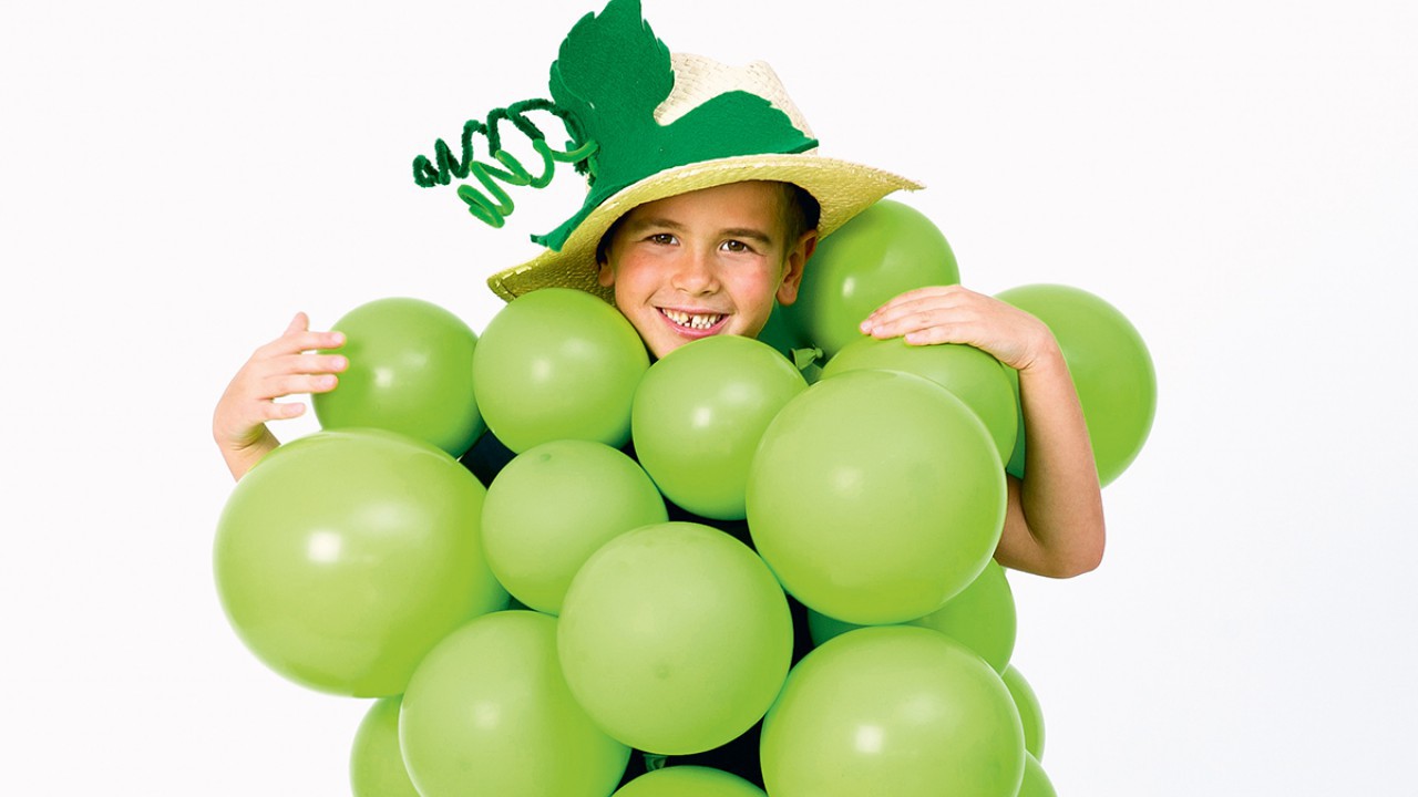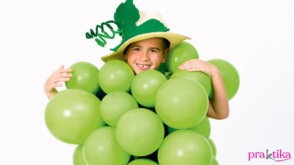 Kis otthoni előkészület után érkezzetek fél órával korábban a farsangi buliba, és zöld színű lufikból ott, a helyszínen megszületik a szőlőfürt jelmeze. Kattints ide a részletekért!