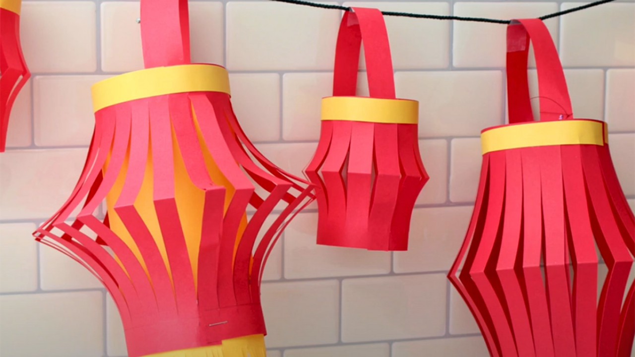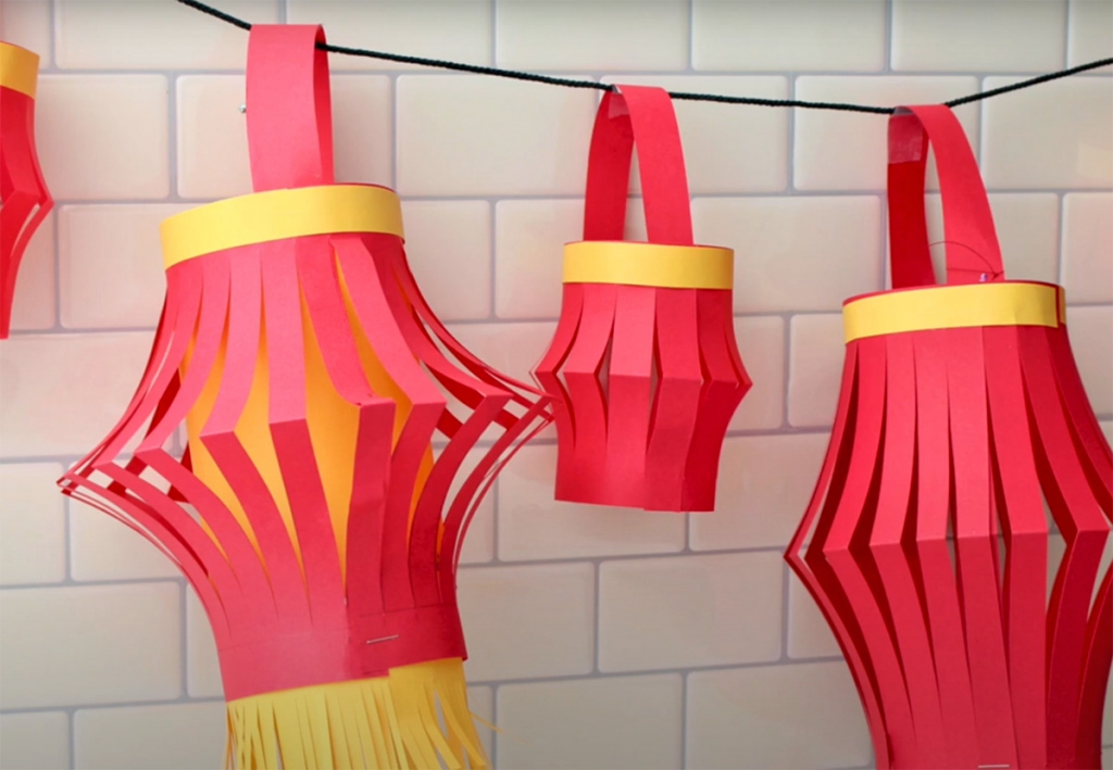 A lampionokhoz piros papírra lesz szükséged. A téglalapot hajtsd félbe, és nagyjából egy centiméterenként vagdosd be ollóval a videón látható módon, majd hajtsd szét. Fogj egy sárga papírlapot, és vagdosd be az egyik végét óvatosan 2-3 milliméterenként, mintha rojtos lenne. Formálj belőle hengert és ragaszd össze a széleinél. Ezután illeszd köré a piros papírlapot és rögzítsd tűzőgéppel vagy ragasztóval. Ezután ragassz hozzá piros papírból fülecskét is, hogy fel tudd akasztani a lampiont. Az egyszerűbb változatot megcsinálhatod a sárga papírlap nélkül is.