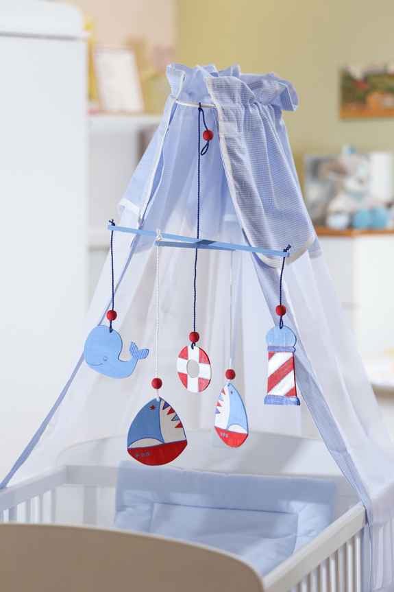 Már a csecsemőket is rabul ejtik a színek, és szívesen nézegetik a mozgó tárgyakat. Függessz az ágyacskája fölé mobilt, természetesen tenger ihlette figurákkal: vitorlással, bálnával, világítótoronnyal és mentőövvel. Alapanyagként a balsafa a legjobb választás, mivel nem kell fűrészelni, hobbikéssel is kivághatod a formákat, amik olyan könnyűek, hogy a legkisebb szellő is mozgásba hozza őket. A piros, a fehér és a kétféle kék színtől lesz igazán stílusos.