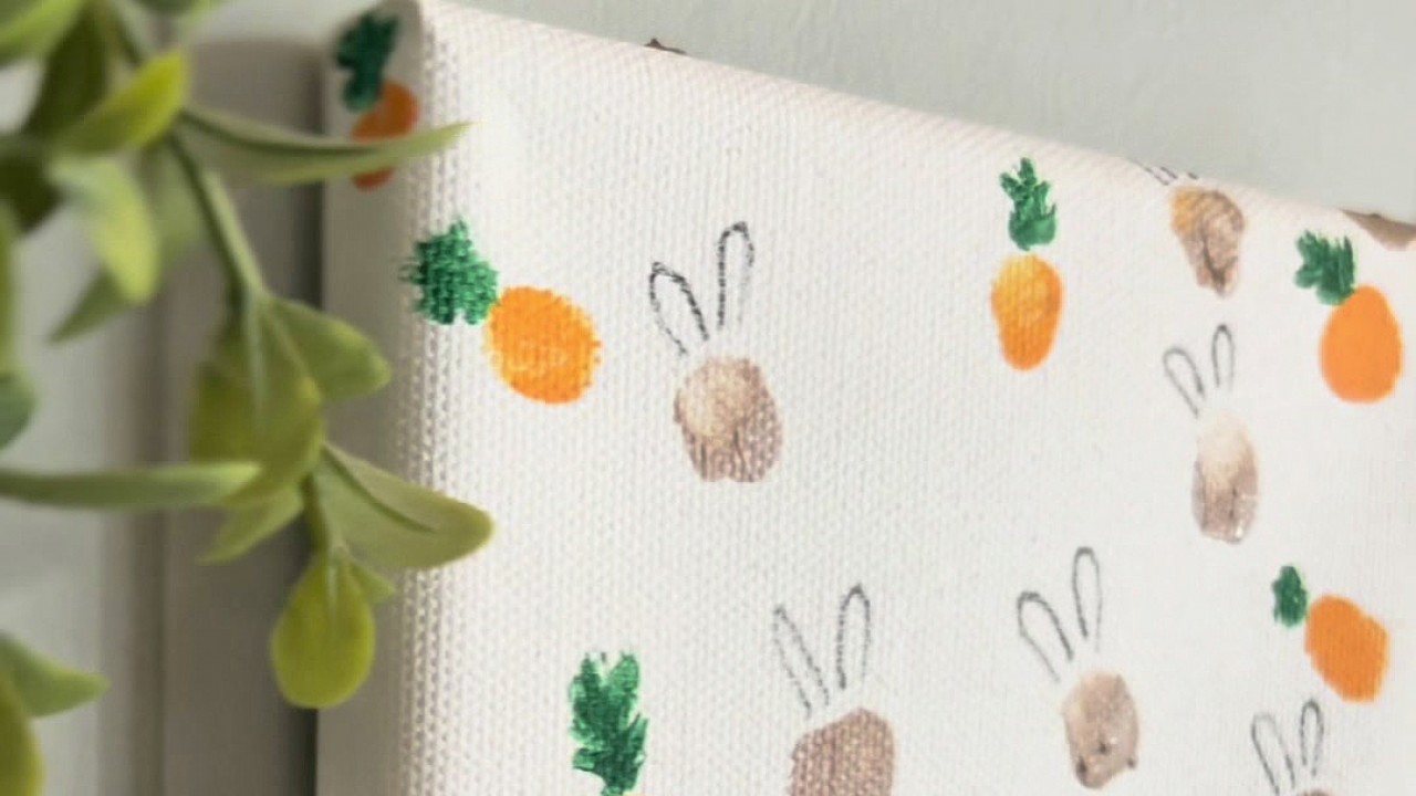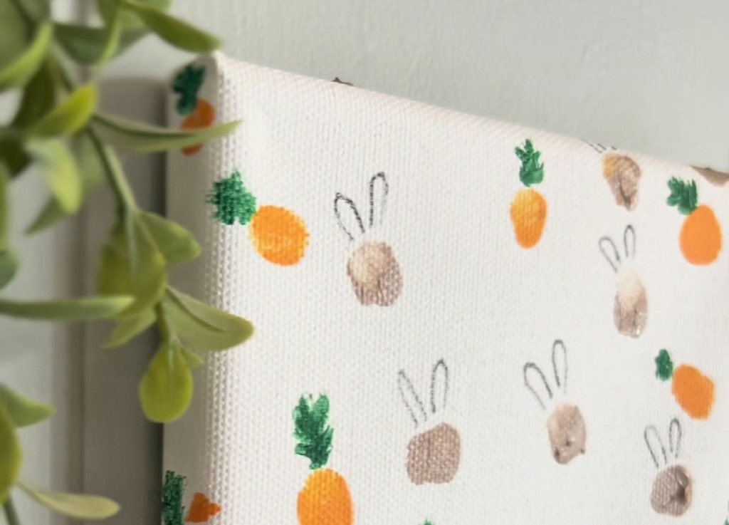 Készíts elő egy kisebb méretű festővásznat, amelyet kézműves boltokból könnyen beszerezhetsz. Narancssárga és világosbarna akrilfestékből nyomj egy-egy pöttynyit egy tálkába. Mártsd bele a gyerkőc ujját és pöttyözzétek össze a felületet. Gyorsan mossatok kezet, majd fekete filctollal rajzoljatok fülecskéket a barna pöttyökhöz, hogy nyusziknak tűnjenek, a narancssárgákhoz pedig fessetek zöld szárat, mintha dundi sárgarépák lennének.