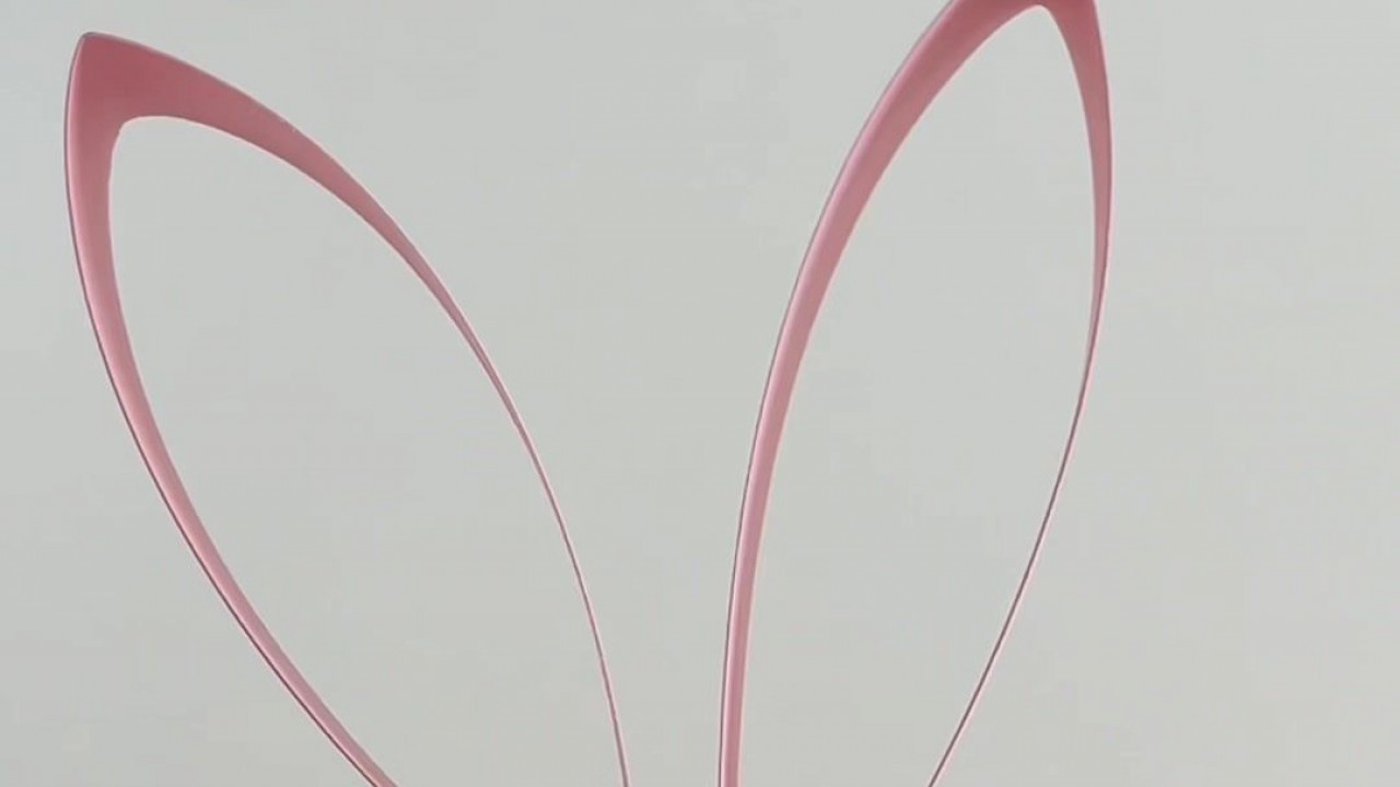 Fehér és rózsaszín papírból vágj ki 10-15 centi hosszú, egy-két centi széles csíkokat. Előbbiekből formázz karikákat, tűzőgéppel óvatosan tűzd össze őket. A rózsaszínek végeit hajtsd be, nyomj rá egy pöttynyi ragasztót és ragaszd össze. Kissé lapítsd össze, hogy fülecskét formázzanak. A füleket ragaszd fel a fehér karikákra, majd lyukaszd át őket lyukasztóval középen és fűzd fel egyesével zsinórra.