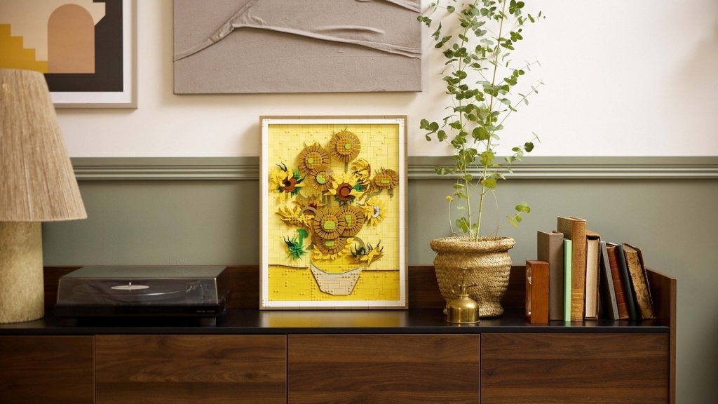 A 2615 darabos modell a Van Gogh Múzeummal közösen készült, és egyedülálló módon mutatja be a művész 1889-es mesterművét. Akár egy festő műve a vásznon, úgy elevenedik meg rétegről rétegre a LEGO® Art Napraforgók. A modellt úgy tervezték, hogy visszaadja a festmény három különböző sárga árnyalatát, és hogy a 16 napraforgó állítható szirmaival megidézze Van Gogh híres fény- és árnyékjátékát. A készlet része egy levehető keret, egy Van Gogh aláírásával ellátott lapocska és egy akasztós elem is, amely segítségével a falra rögzíthetjük az elkészült alkotást.