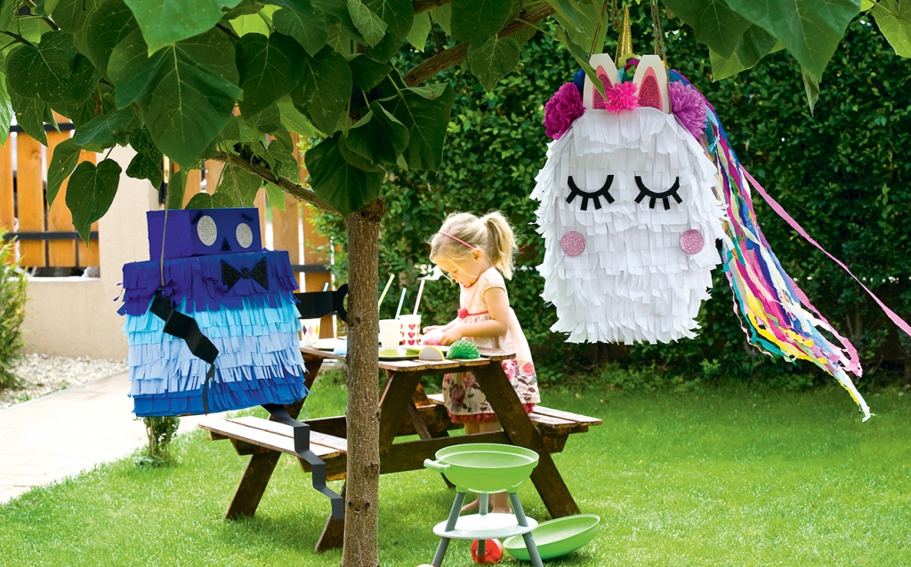 • Vágj ki 2 db szemet, majd 2 db kört az orcáknak. Tapaszd őket a helyükre a piñata elején.