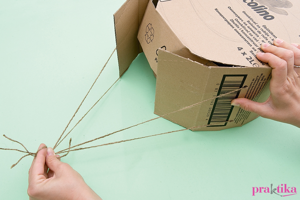 Ollóval lyukaszd át az oldalelemeket két két ponton, ide kerül majd a kötél, amivel fel tudod lógatni a fára.