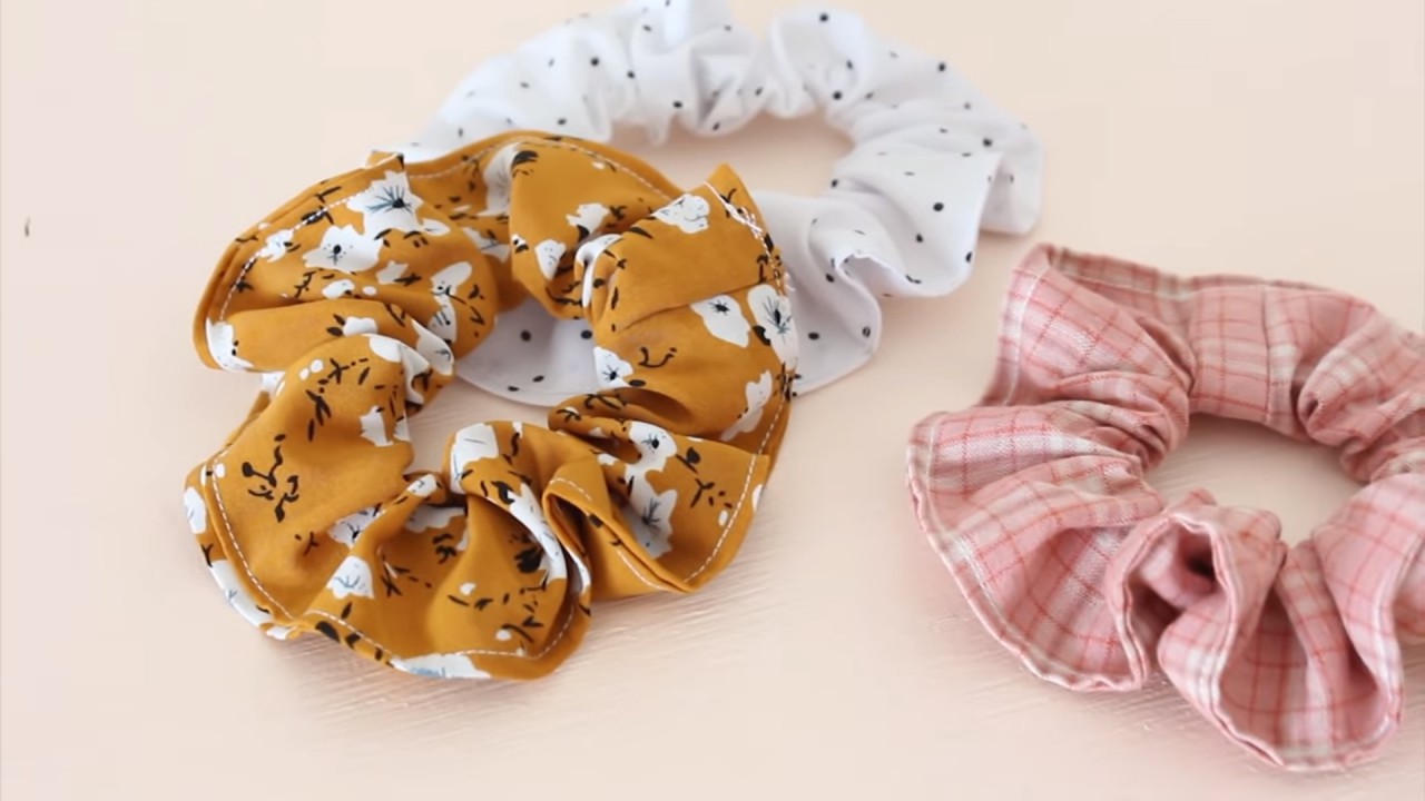 A hajgumihoz egy vékonyabb textilanyagra lesz szükséged. Formálj belőle körformát, varrd be a szélein, csak egy kis lyukat hagyj rajta: ebbe húzd bele a gumit. Végül ezt a rést is varrd be.