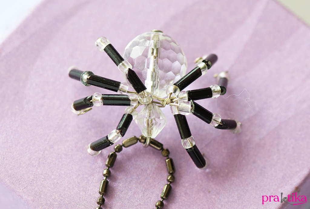 3. Készíts ugyanígy még 3 pár lábat, és tekerd a pók dereka köré. A fej feletti hurokba fűzz láncot.