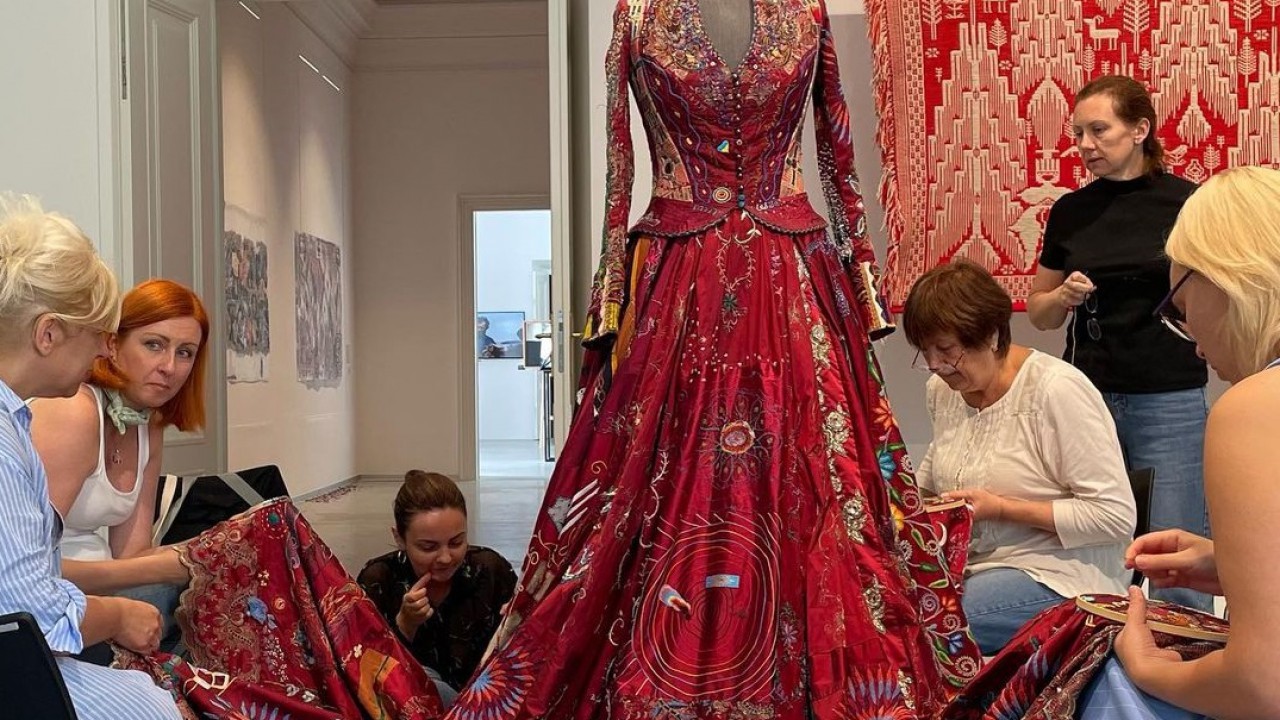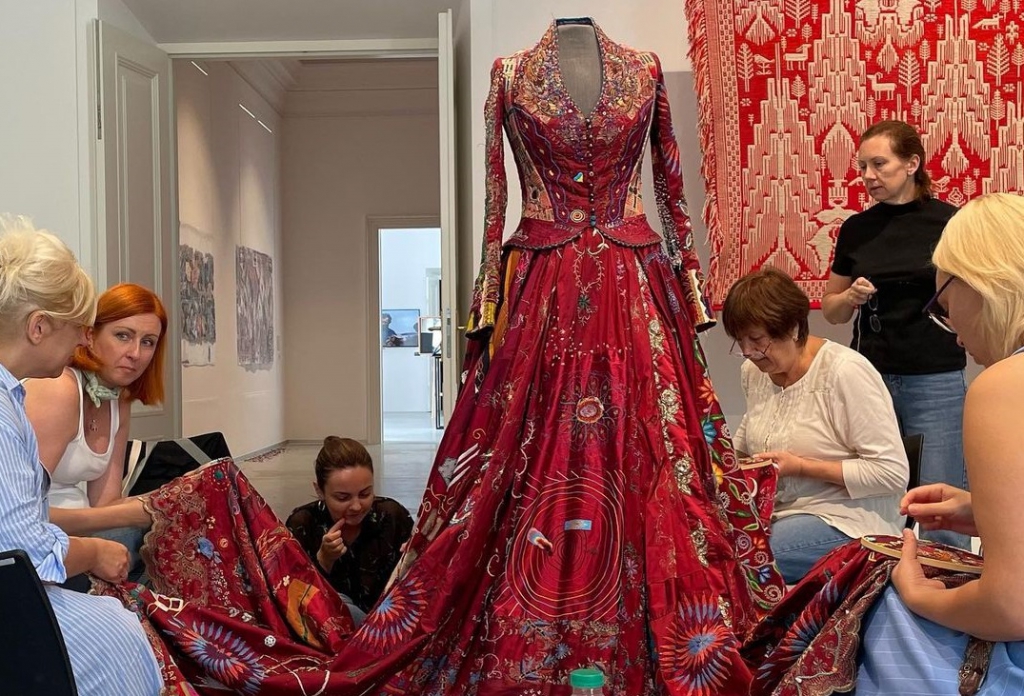 46 országból összesen 343-an vettek részt az úgynevezett „Red Dress”, azaz „Vörös Ruha” projektben. Megálmodója, Kirstie Macleod szerette volna, ha egy ruhakölteményen egyesülnek a különböző identitások, kultúrák, hagyományok. 84 darab bordó selyemszövetből áll, ezeket hímezték ki a világ minden táján élő kézművesek Egyiptomtól Mexikón át egészen Japánig.