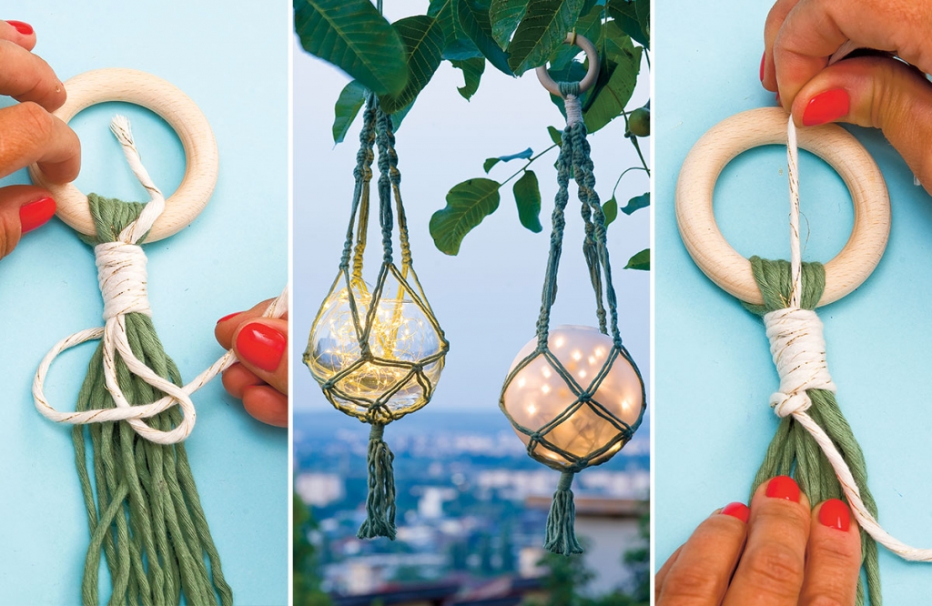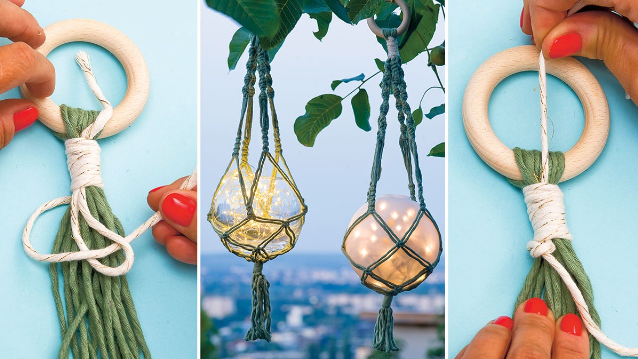 Mélyzöld makramé szolárlámpa napelemes izzósorral: 60 perc alatt elkészítheted