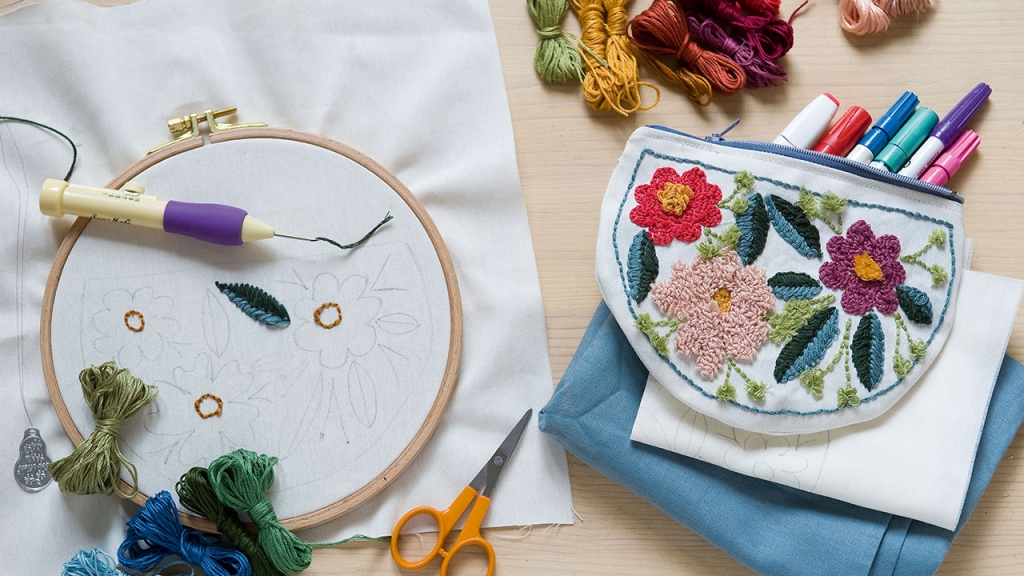 Képek, párnák, falikárpitok, sőt, különféle használati tárgyak is készíthetők az igazán látványos punch needle technikával. Alkotónk most egy virágokkal díszített, praktikus neszesszert álmodott meg.