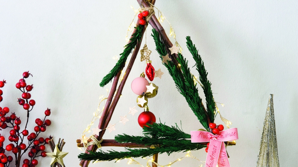 Ha aprócska a lakásod, és nem férne be egy pompázatos, illatos fenyőfa, készítsd el a neked megfelelő méretben ezt az ötletes, botokból álló díszt, amellyel megalapozhatod az ünnepi hangulatot.