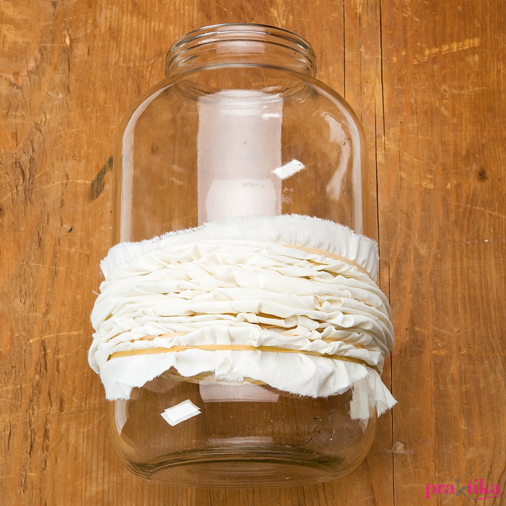 Négyzetesre hajtogatott anyagot összeszoríthatsz két befőttesüveg tetejével.
