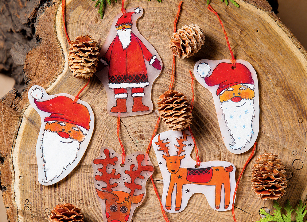 A fóliára nagy méretben a gyerekek is könnyen felrajzolhatják a figurákat. Készítsék el ők a mikulásváró függőket, a felnőtteknek csak a zsugorításban kell segíteniük.