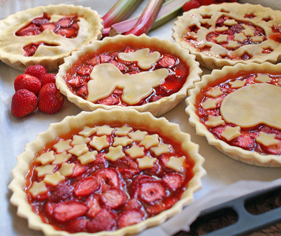 Főzés közben sok levet ereszt, ezért elég csak egy deci vizet adni hozzá, amikor felteszi főni a cukorral és az őrölt fahéjjal. Egy-két percig forralja, aztán beledobja a felaprított epret és a reszelt citrom héját, majd újabb pár percig főzi. Hogy kissé besűrűsödjön a töltelék, elkeveri benne a keményítőt. A végén még beleszórja a diót is, ami nemcsak felszívja a rebarbara levét, de így még finomabb lesz a pite. Félreteszi, hogy kihűljön. A tésztához összegyúrja a lisztet a hideg vajjal, a kristálycukorral, a két tojással, a sóval, és egy citrom reszelt héjával. A vaj maradhat kicsit darabos, aztán csak annyi jéghideg vizet ad a tésztához, hogy kemény cipó legyen belőle. Fóliába csomagolja, és hűtőbe teszi legalább 1-2 órára. A pihentetett tésztát belisztezett deszkán 2-3 mm vékonyra nyújtja. Ráfekteti a pitesütőt és a forma magasságánál 3-4 cm-rel többet hagy rá, amikor körbevágja. A kivajazott sütőformába fekteti a tésztát, elegyengeti a túllógó széleket. Ráönti és elegyengeti a tésztán a hideg rebarbarás tölteléket, a tészta széleit ráhajtja, aztán szép hullámosan, körben összecsipkedi. Előmelegített sütőben, 180°C-on és 45- 50 perc alatt megsüti. Ennyi idő kell, hogy a töltelék is jól átsüljön.