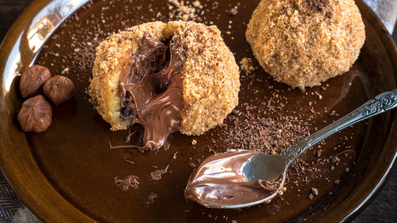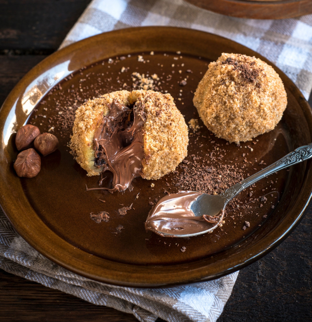 Felteszi héjában főni a krumplit. Közben elkészíti a kakaós tölteléket: a két tojás sárgájához azonos arányban porcukrot és kakaóport kever, az a fontos, hogy végül sűrű, krémszerű masszát kapjunk. A kétnapos fehér kenyér belét kikapargatja, ezt a darabos kenyérmorzsát a zsemlemorzsával és a mandulaszeletekkel együtt serpenyőben megpirítja az olajon.