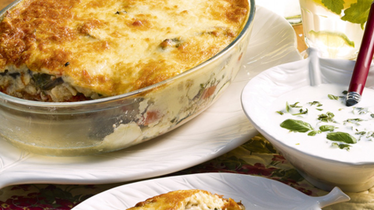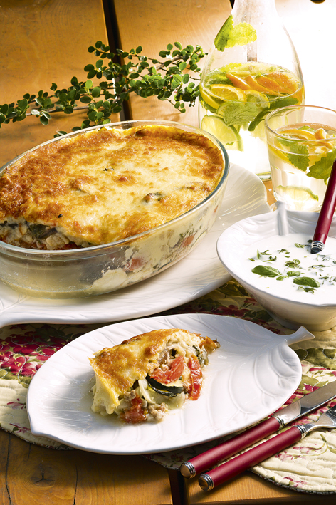 A zsírban megfuttatja Marcsi a kockákra vágott hagymát, beledobja a darált pulykacombot, és fehéredésig kevergeti. Sózza, borsozza, hozzáadja a felaprított petrezselymet, és lefedve megpárolja a húst. A karfiolt rózsáira szedi, és párolóbetéttel gőzben puhára főzi. A paradicsomot, a cukkinit, a padlizsánt felkarikázza. A csillagtököt szeletekre vágja, kiszedi a magjait. A vajból besamelmártást főz a liszttel és a tejjel. Sózza, őrölt fehérborssal és szerecsendióval ízesíti, és elkeveri benne egyenként a tojásokat meg a tejfölt, és a lereszelt sajt felét. Egy tűzálló tálat kibélel a szalonnacsíkokkal, és a zöldségeket meg a húst felváltva addig rétegezi, amíg elfogynak a hozzávalók. A bazsalikom felét kisebb darabokra tépve a paradicsomra szórja. A mártást a rakottasra önti, rászórja a többi sajtot. A tálat hideg sütőlapra teszi, és úgy tolja a forró sütőbe, így biztosan nem pattan el az üveg. Marcsi a felkarikázott padlizsánt mindig besózza. A só hatására kioldódik belőle a keserű íz, így finomabb lesz. Félóra múlva leitatja róla a levét, aztán sorolja a többi zöldség közé.