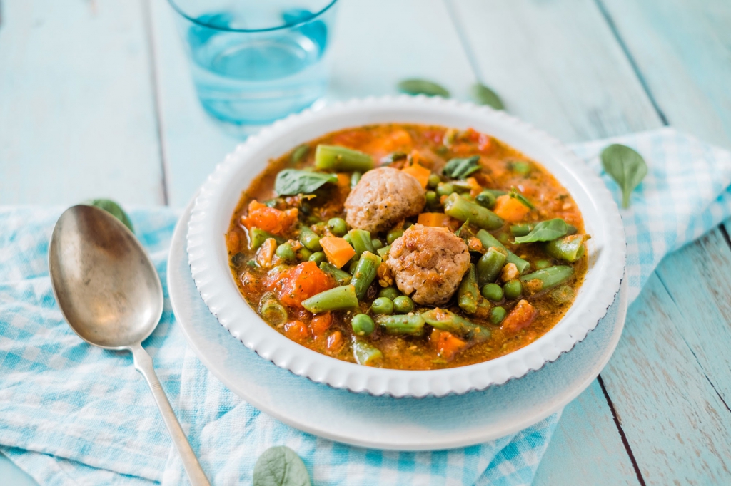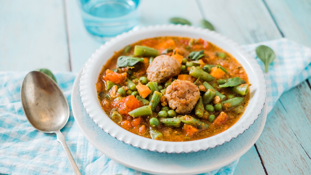 Egy lábasban a libazsírra dobja a felvágott zöldségeket, sózza, borsozza, hozzáadja a babérleveleket, belefacsarja a citrom levét, és lefedve pár percig párolja. Ez alatt összedolgozza a darált húst a tojással, a fűszerekkel és a jó adag finomra vágott zöldpetrezselyemmel. A félig megpuhult zöldségeket felönti 1 liter vízzel. Ha már forr a leves, beledobálja a két vizes tenyere között gömbölyűre formált gombócokat. Ezután már tíz-tizenöt perc alatt elkészül a leves. Végül még a tejfölt úgynevezett hő-kiegyenlítéses módszerrel adja hozzá, ezt úgy oldja meg, hogy kevés forró levest kanalaz a hideg tejfölhöz, amivel simára keveri, és kissé felmelegíti, így szép sima, selymes marad, amikor a lábasba önti.