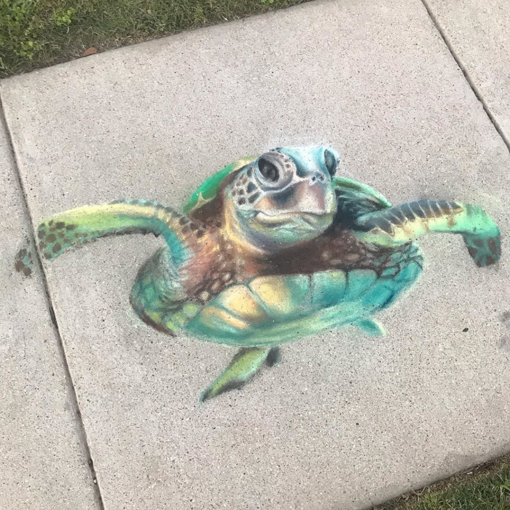 Különleges hobbija van Jan Rigginsnek és 13 éves lányának, Oliviának: lenyűgöző aszfaltrajzokat készítenek krétával. A páros korábban versenyeken is indult, a karantén alatt azonban csak lakóhelyükön alkothattak.