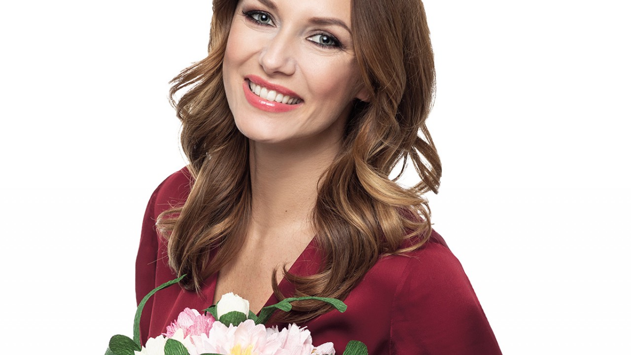 Az alap a fagolyóból és szívószálból áll. Kisebb szirmokkal dolgozz, kelleni fog hozzá 6 db rózsaszín és 5 db zöld színű. A fagolyó tetején a lyukat először el kell fedned úgy, hogy ráragasztasz egy négyzet formájú rózsaszín kreppet. Formázd a szirmokat, majd rétegezve ragaszd fel, az előzőhöz képest kissé elcsúsztatva. A zöld szirmokkal fejezd be, majd tekerd körbe a szívószálat a zöld kreppszalaggal.