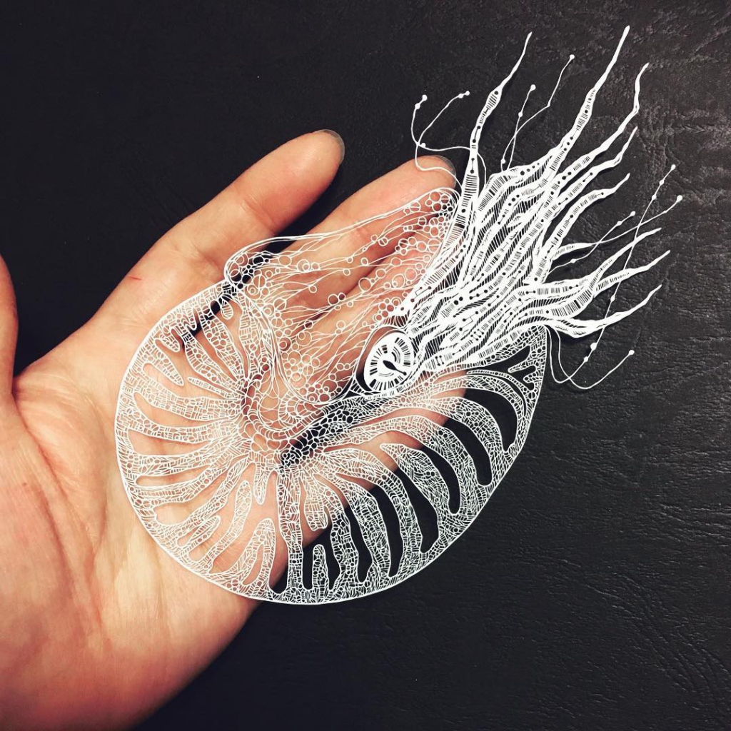 Óriási türelem és rengeteg idő kell ahhoz a hobbihoz, amit Masayo Fukuda űz. A japán művész leheletvékony papírlapokból készít állatos képeket, de nem ceruzával, hanem sniccerrel. A vágóeszközt elképesztő ügyességgel használja, minden apró részletet kidolgoz. Egyik nagy kedvencünk tőle a polip, de imádjuk a többit is!