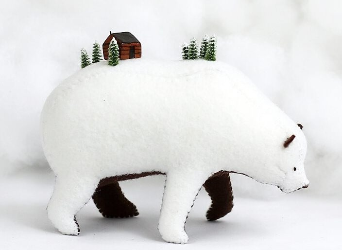 Jessie Cunninghamt mindig is lenyűgözték a medvék: testük erős, erejük hatalmas, veszélyesek, félelmetesek és tiszteletet ébresztenek bennünk. A művészt a kanadai vadvilág inspirálta, amikor elkezdett filcből macikat készíteni. Nem a klasszikus értelemben vett figurákról van szó, ezek az állatok egy mini világot cipelnek a vállukon.