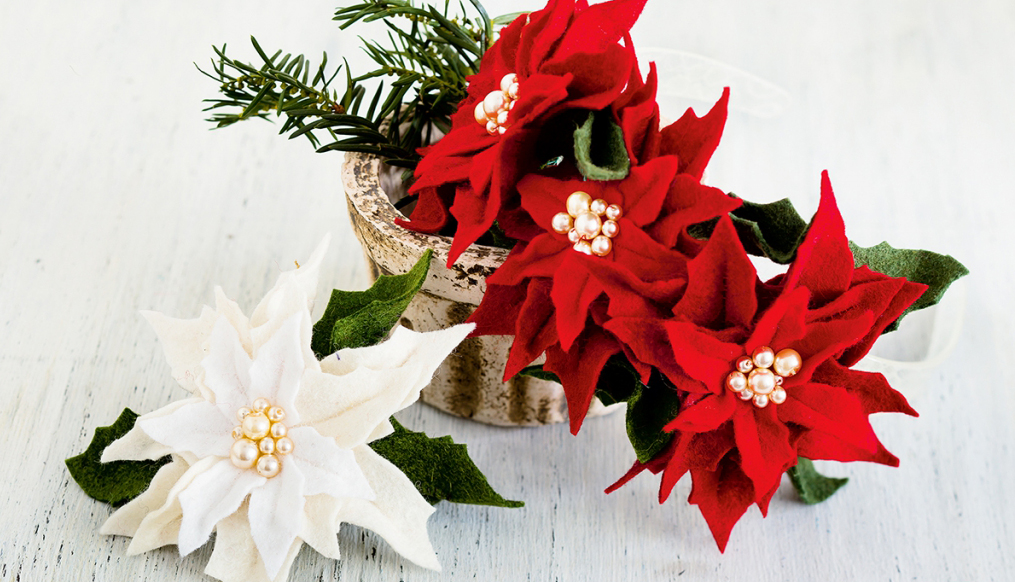 Mikulásvirágok élethű másolatát készítheted el filcből, és a gyönyörű darabokat akár a lányodnak is átadhatod, ha szereti a most divatos, nagyméretű virágokkal díszített hajpántokat. Háromféle levélméretet kell kivágnod, majd ezeket összeöltened, végül pedig teklagyöngyökkel díszítened. Kattints ide, ha kíváncsi vagy az elkészítés folyamatára!