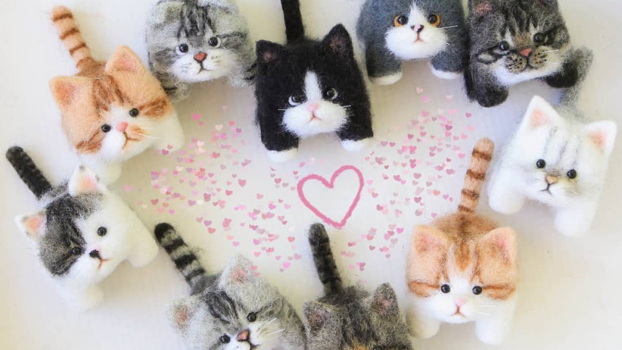 Elisabeth kedvenc időtöltése, hogy tűnemezelt figurákat készít. Nem is akármilyeneket: tenyérben is elférő, tündéri kiscicákat.