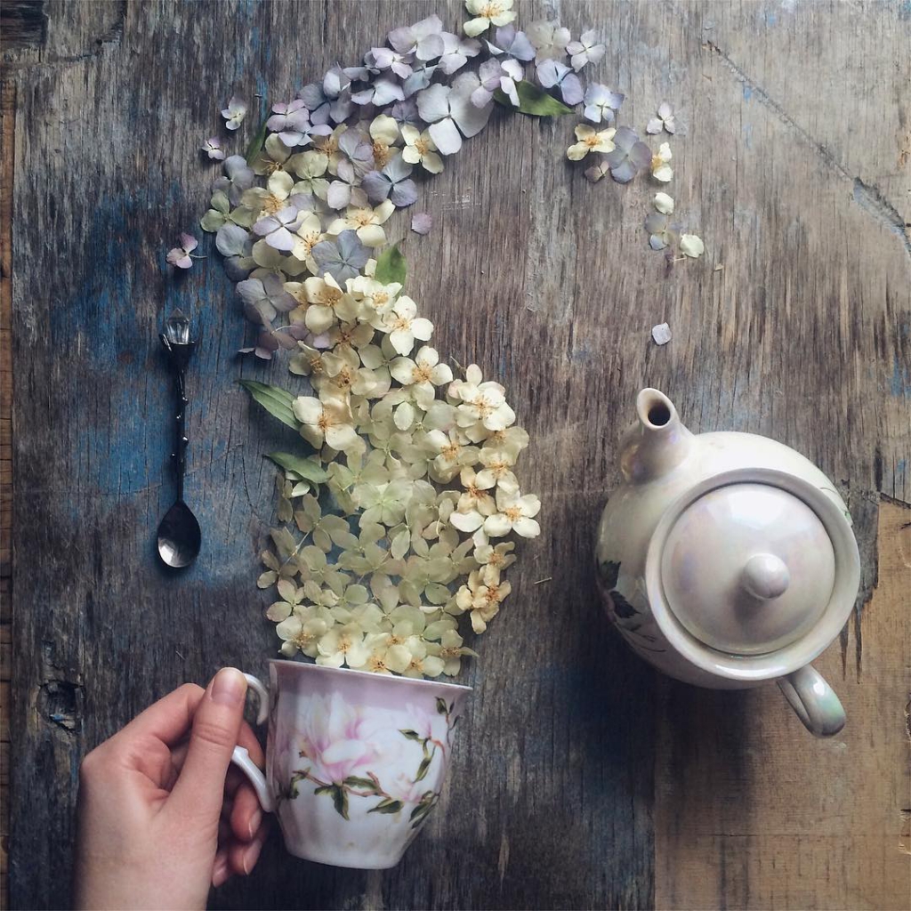 Néhány maroknyi virágsziromból is lehet műalkotás, ezt bizonyítják Marina Malinovaya képei. A hölgy tulajdonképp nem tesz mást, csak kiszárítja és szépen elrendezgeti őket úgy, hogy úgy tűnjön, mintha épp egy bögréből vagy teáskannából ömlöttek volna ki az asztalra. A kompozíciók nagyon egyszerűek, mégis csodásak, öröm rájuk nézni. Mutatunk is belőlük néhányat!