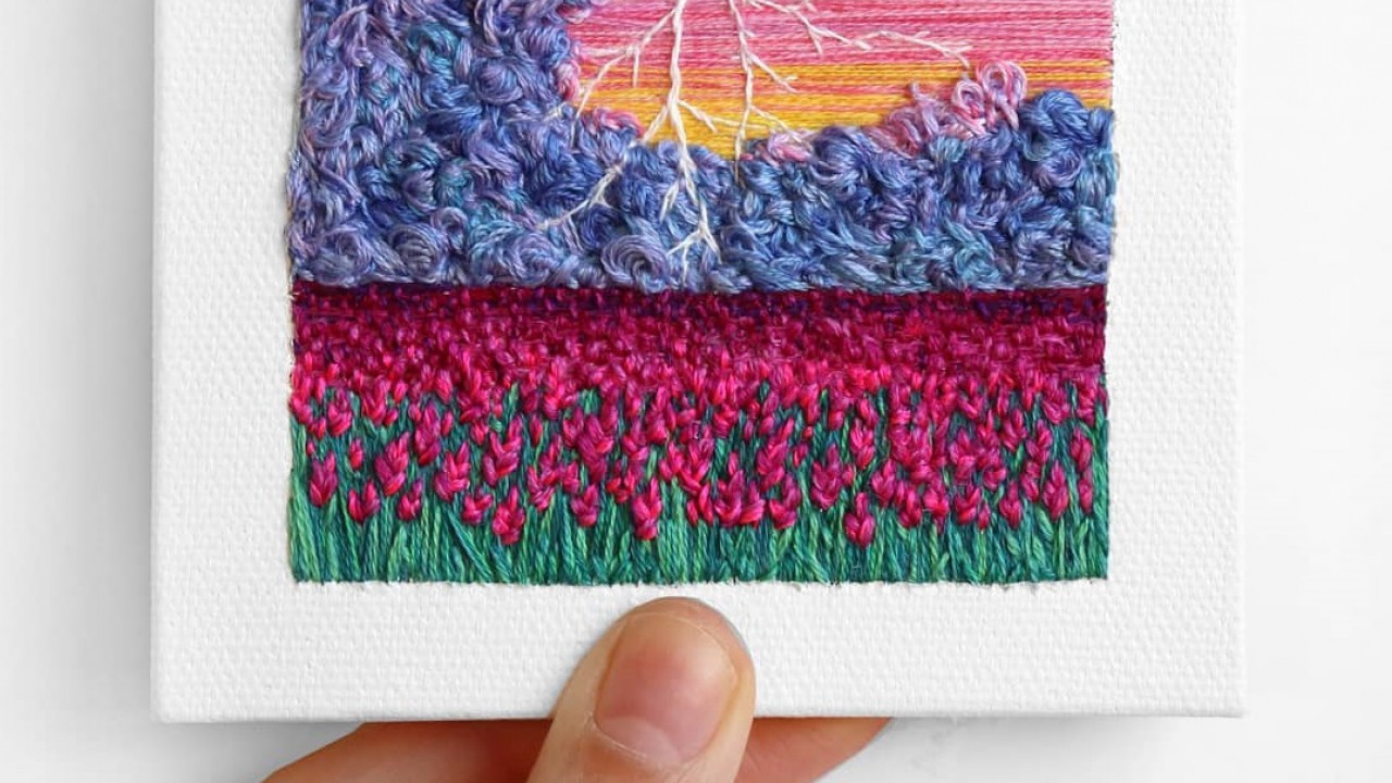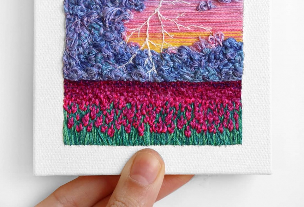 Sokunkat ösztönöznek alkotásra a természet szépségei, a naplementék, a festői tájak... Carolina Torres viszont nem ecsetet és festővásznat ragadott, hanem tűt és cérnát. Az amerikai alkotó aprócska képeket hímez, amelyet aztán be is keretez. Méretük tényleg annyira kicsi, hogy tenyérben elférnek.