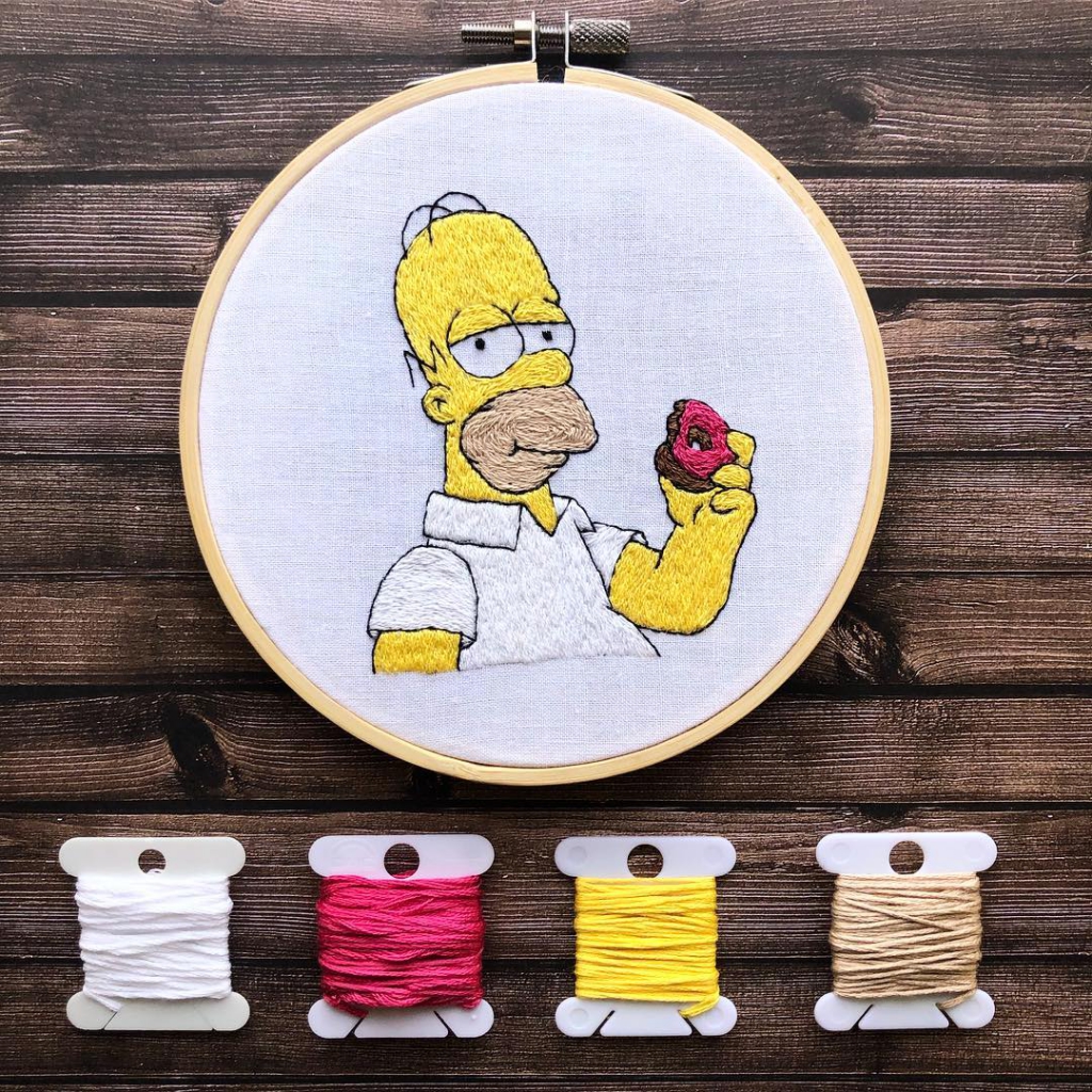 Izgalmas hímzésekre lettünk figyelmesek az Instagramot böngészve. A magát introvertált, autodidakta alkotóként jellemző Rayna tájképek és virágos motívumok helyett rajfilmfigurákat és képregényhősöket varázsol a hímzőkeretre. A Simpson családból már több jelenetet is elkészített, de nagyon kedveli Snoopy karakterét is.