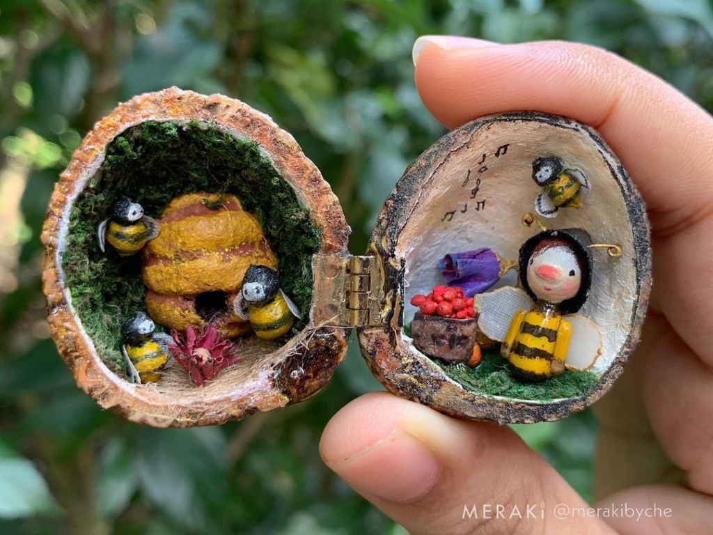 Csak az számít igazán, amit szenvedéllyel csinálunk – vallja MERAKi. Az alkotó hobbija, hogy miniatűr figurákat varázsol dió- és mogyoróhéjak belsejébe. Minden egyes darabot hatalmas szeretettel és odafigyeléssel készít. Már gyermekként is rajongott a mesékért, nem tagadja, munkásságát is a tündérek ihlették.