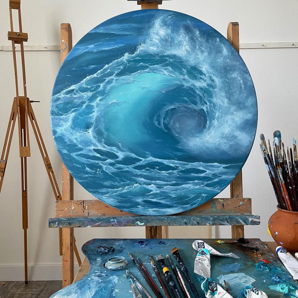 A tenger látványa sokakat rabul ejt, így történt ez Alexandra Velichkóval is. Az ukrán alkotó elképesztően tehetséges, ámulatba ejtő képeket fest. A tajtékzó hullámok a kék ezer árnyalatában pompáznak és megcsillan rajtuk a napfény. Olyan, mintha nem is festményeket látnánk, hanem fotókat: szinte halljuk a morajlást.