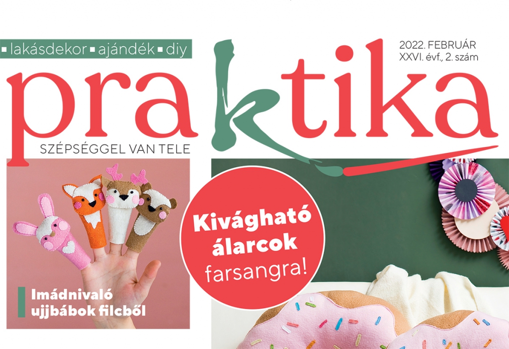 Szerkesztőségünk ehavi kedvence az ennivalóan édes fánkpárna, amelynek elkészítését lépésről lépésre megmutatjuk. Ne hagyd ki te sem, szuper kiegészítő lesz otthonodban! Megidézzük továbbá az erdő cuki kis lakóit: filcből ujjbábokat varrhatsz a legkisebbeknek. Hogy a lábad se fázzon a hideg napokon, segítségünkkel pihe-puha papucsra is szert tehetsz.