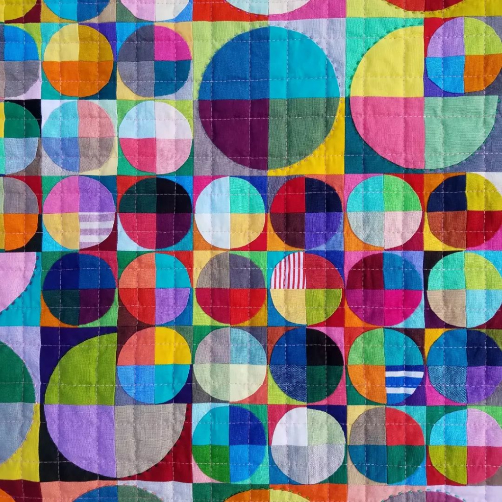 „Miközben a járvány alatt én magam is egy nagy buborékban éltem, ezeknek az aprócska buborékoknak az elkészítése kötött le. A negyedköröket sablon segítségével rajzoltam meg és vágtam ki egyesével, majd varrtam össze egy nagy egésszé” – mesélte a Colossalnak a hölgy.