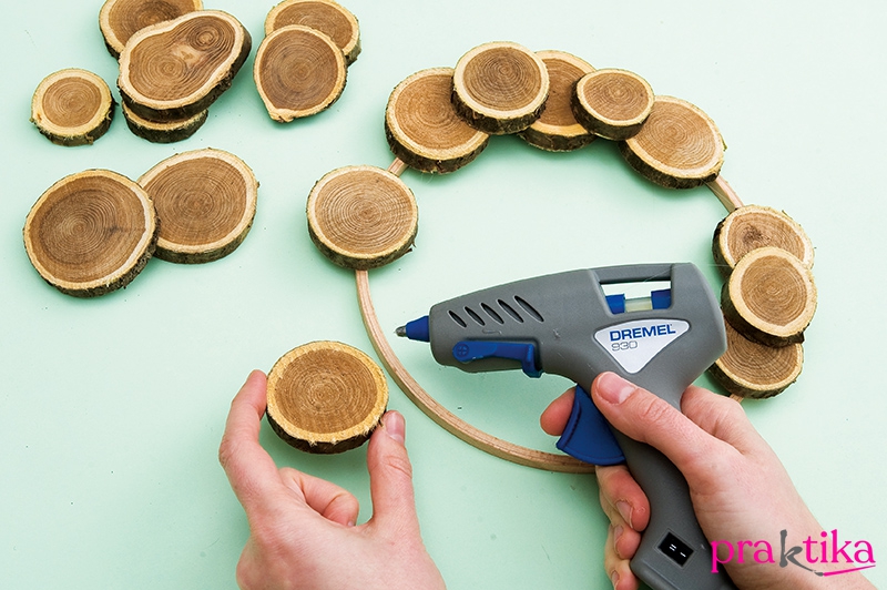 1. Ragaszd a faszeleteket tetszőleges elrendezésben a karikára.