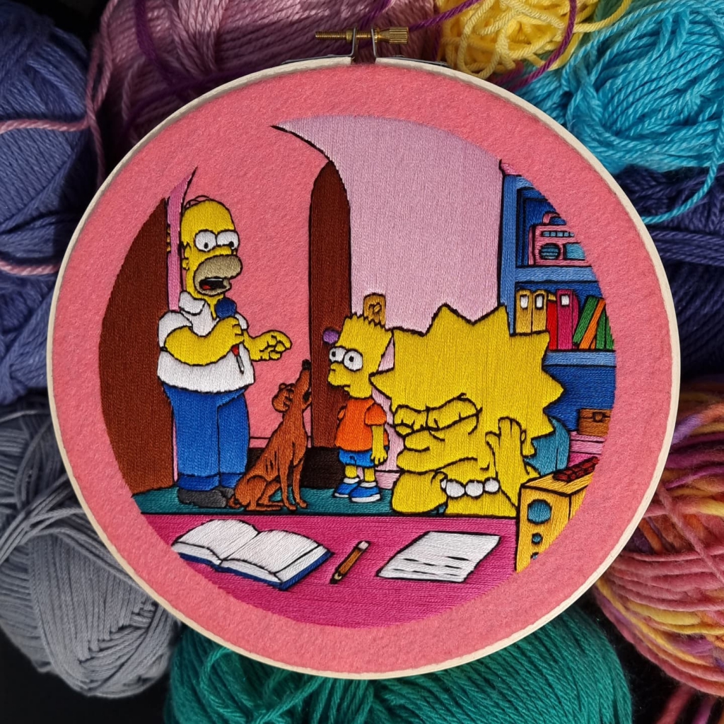 Gabriela Martinez imád hímezni, ám az alkotó a színes virágok és egyéb romantikus motívumok helyett inkább kedvenc rajzfilmsorozata, A Simpson család jeleneteit varázsolja a vászonra. Hobbijával 2015 óta foglalkozik, és az utóbbi időben gyakran filcet használ alapként, amely jól illik a figurákhoz. Egy-egy ilyen munkán átlagosan 10-30 órát dolgozik, és saját bevallása szerint ennek minden egyes percét élvezi.