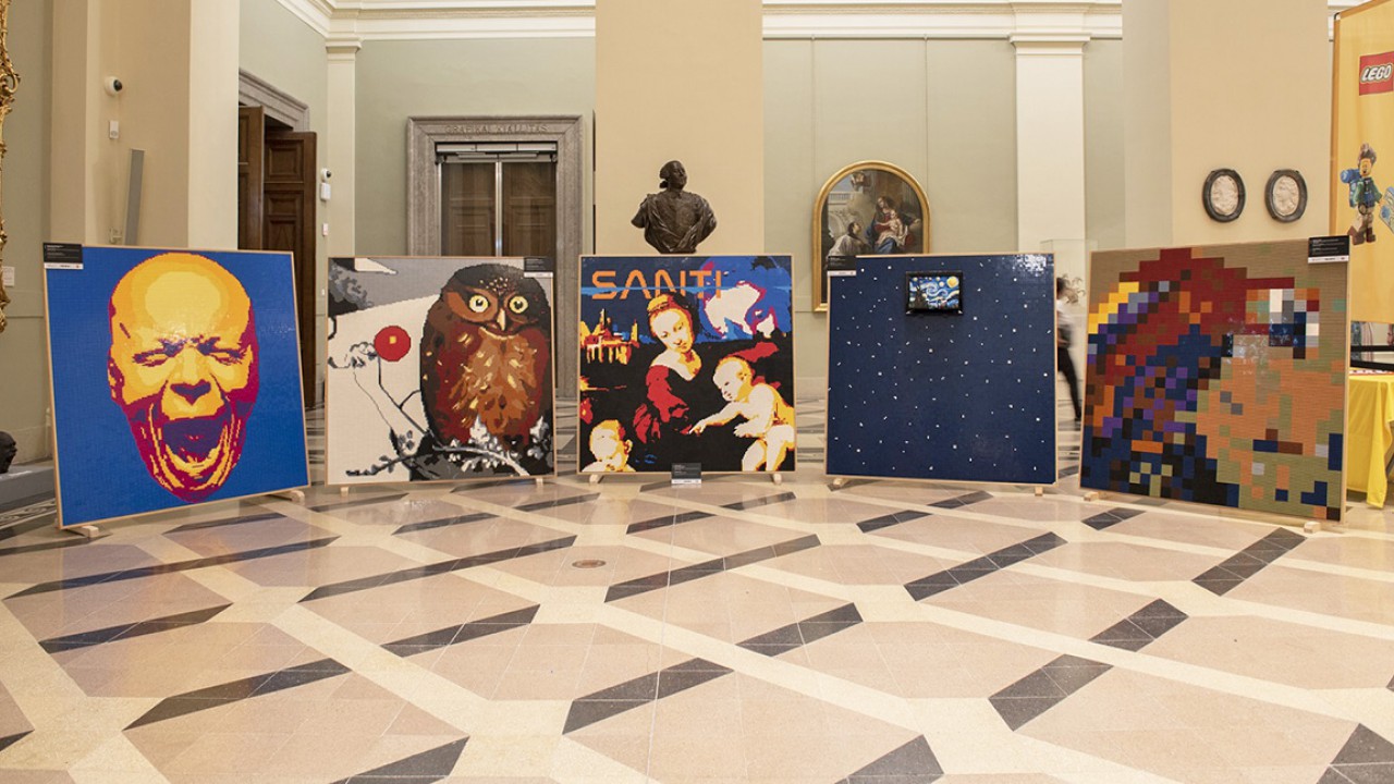 Ezen a színek dominálnak – a rendkívül valósághű szobrot megörökítő különleges színkombinációjában a pop-art koronázatlan királyának, Andy Warholnak munkássága köszön vissza. A sorozat legkidogozottabb elemeként Raffaello befejezetlen Esterházy Madonnája is rendhagyó értelmezést kapott, a háttérben a Lófej-ködöt jelképező színekben megjelenő Madonna fejjel és a NASA-ra utaló Santi felirattal kiegészítve. Végül, de korántsem utolsó sorban Vincent van Gogh Csillagos éj című festménye is bekerült ebbe a különleges gyűjteménybe. A festő Hold és csillagok iránti rajongását megörökítő képet – amely LEGO készlet formájában is elérhető - a kiállításon foszforeszkáló kockákkal tették még izgalmasabbá.